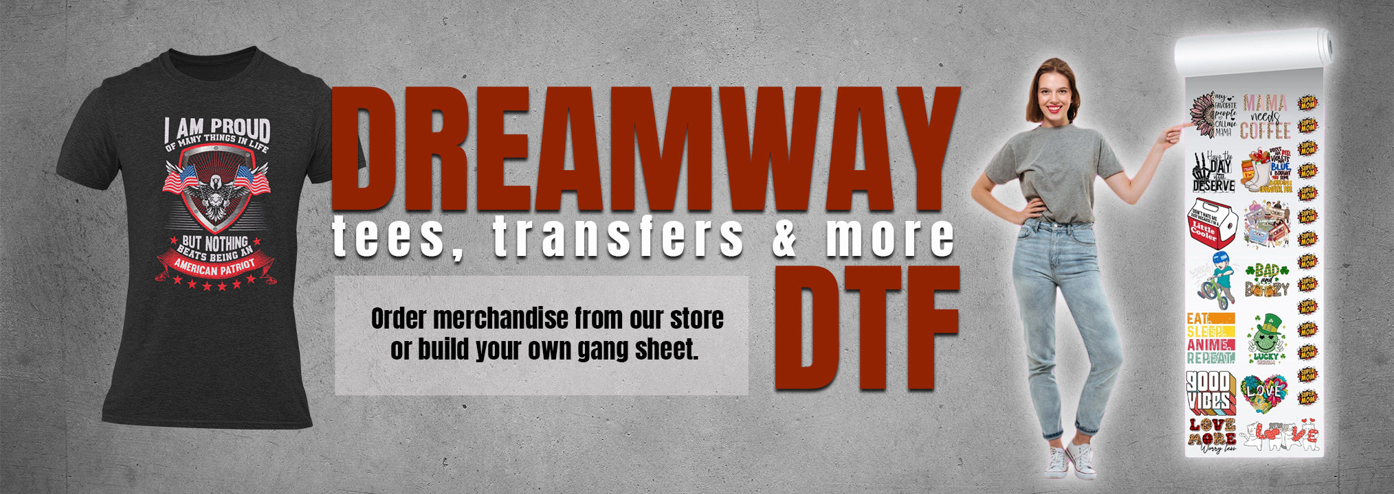 Dreamway DTF understands your time is valuable. We want you to click on a product, make your selection, place your order, and go about your day. We'll take care of printing & shipping and if you spend over $100 your order ships FREE!